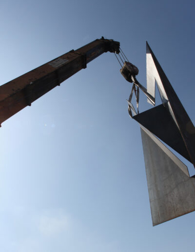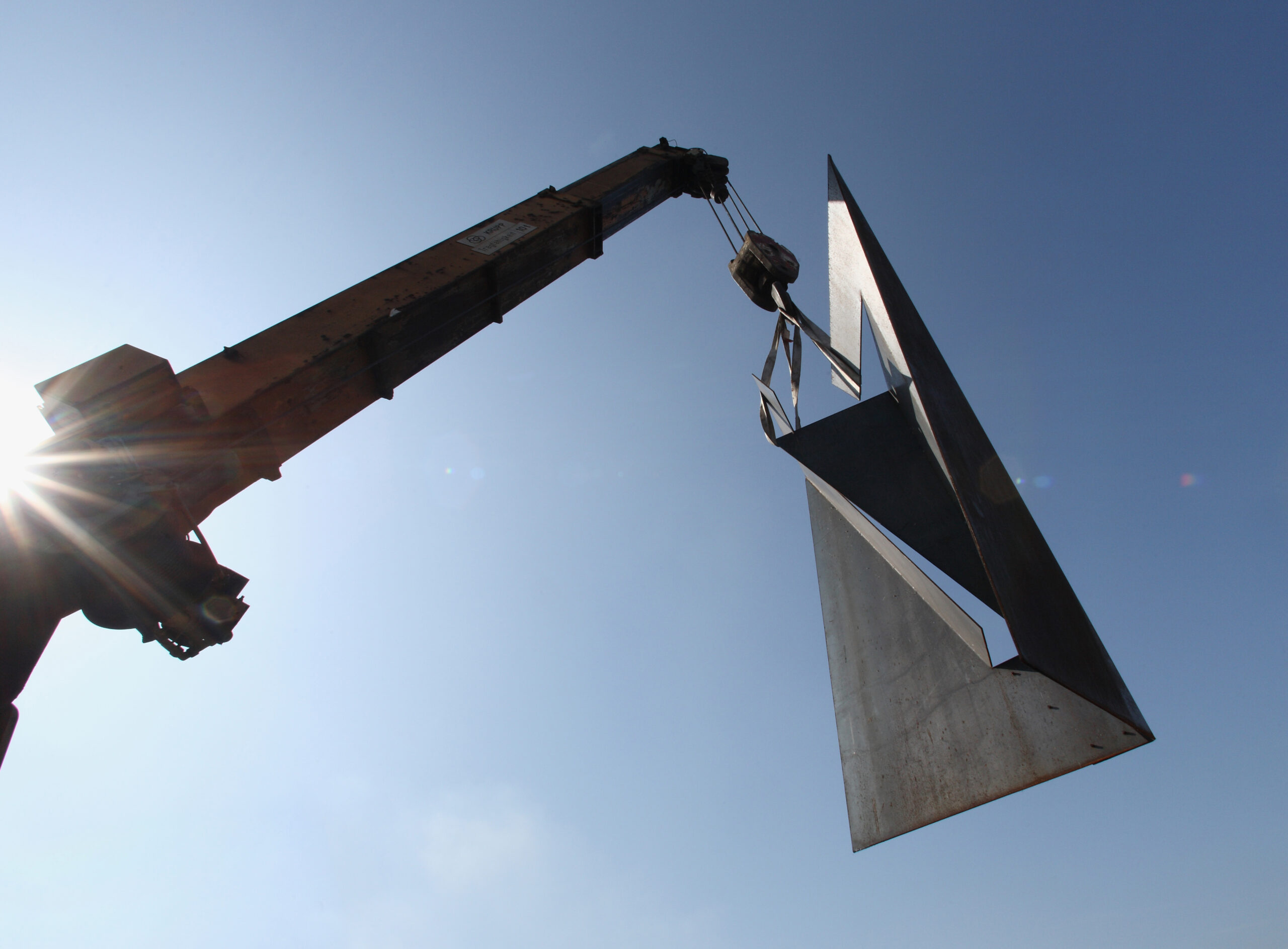 SIGNUM wird an sieben völlig unterschiedlichen Orten aufgestellt. Dadurch wird erkennbar, wie entscheidend der jeweilige Standort die Interpretationsmöglichkeit der Stahlplastik erweitert.